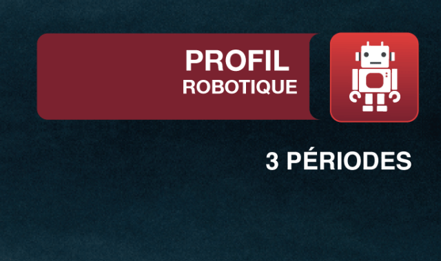 En 1re, 2e et 3e secondaire, l’élève suit le programme de défis robotiques. La conception de robots programmés et les expériences en laboratoire ne sont que quelques-unes des activités au programme. Le profil Robotique est offert à raison de 3 périodes par cycle de 9 jours.